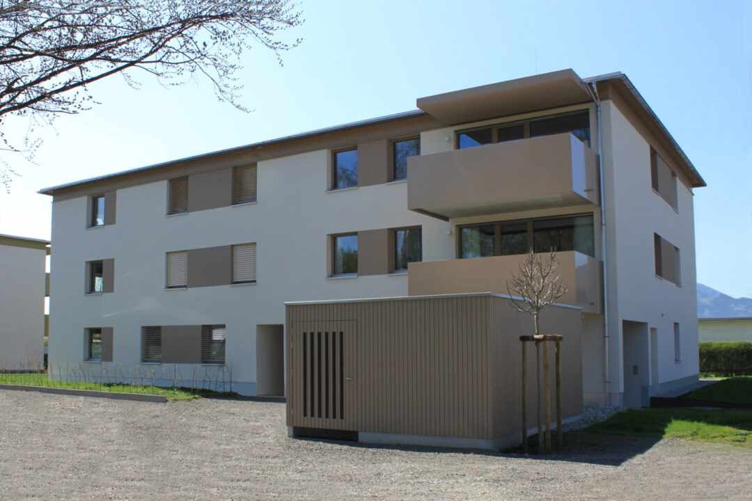 This subsidized housing project accommodates 22 residential units - spread over two almost identical, three-story buildings. Due to the tight budget, the architects designed the two houses to be extremely compact and therefore cost-effective.