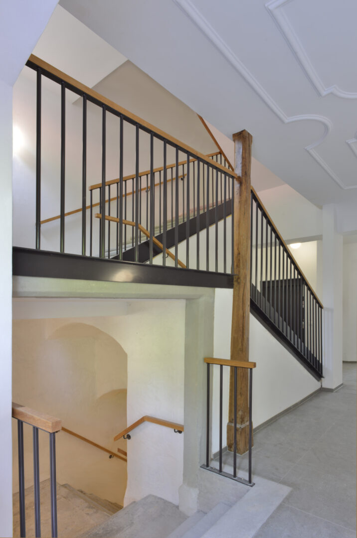 This very special and demanding project involves the general renovation and conversion of two listed buildings, that form an open courtyard situation. While the five-story building has a steep gable roof, the three-story structure is equipped with a slightly sloping gable roof. The oldest parts of the ensemble are around 500 years old. In keeping with this long period of time, the history of both monuments is eventful. They were used both as an estate and as an inn. Most recently they functioned as a nursing home for the city of Bregenz. Then they stood empty for a while - in a desolate condition.