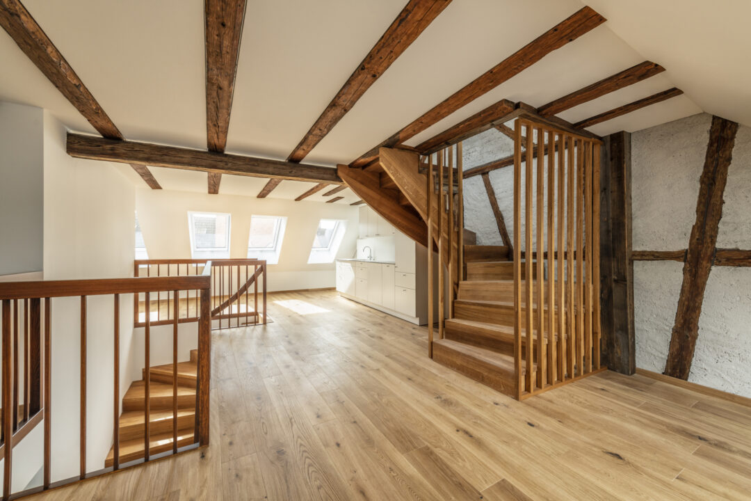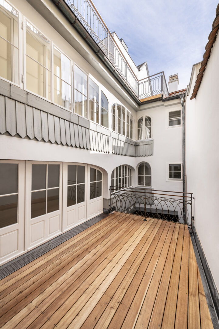 The partially 400 year old town house was largely built in the 19th century. In addition to the owner's apartments, it also previously housed a wheelwright's shop with stables in the rear of the building. After sitting abandoned for a long time, the building complex was completely renovated. In addition to the loft extension, particular emphasis was placed on a gentle renovation of the inner courtyard with a spectacular view of the Schattenburg.