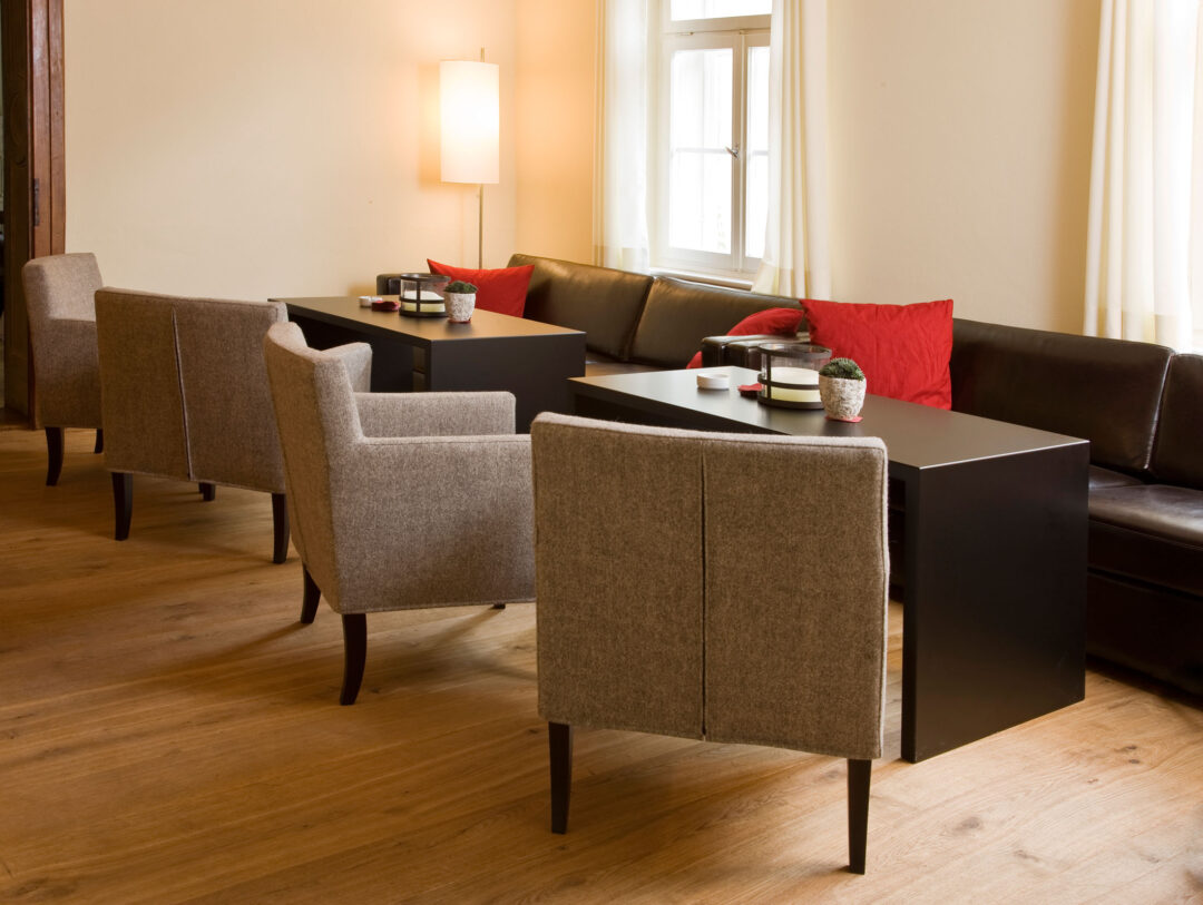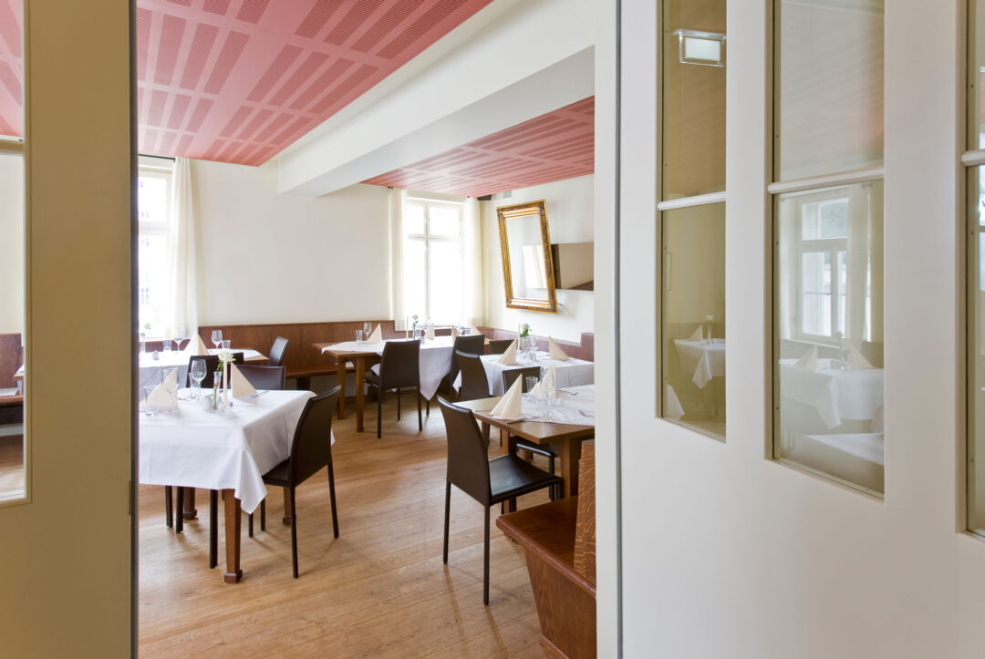 The aging inn in Dornbirn no longer met today's demands for a modern and well-organized dining experience. Above all, the logistical processes were impractical and had to be taken into account. The solution was to accommodate the kitchen in an addition, upgrade the entrance situation with a lounge area and position the bar as a connection between the kitchen and the guest room. The outdoor patio was redesigned as well. After the gradual renovation of the industrial buildings, the former production facility Gutle is populated with two museums, a warehouse and office building and an inn., making it one of the most popular excursion destinations for locals.