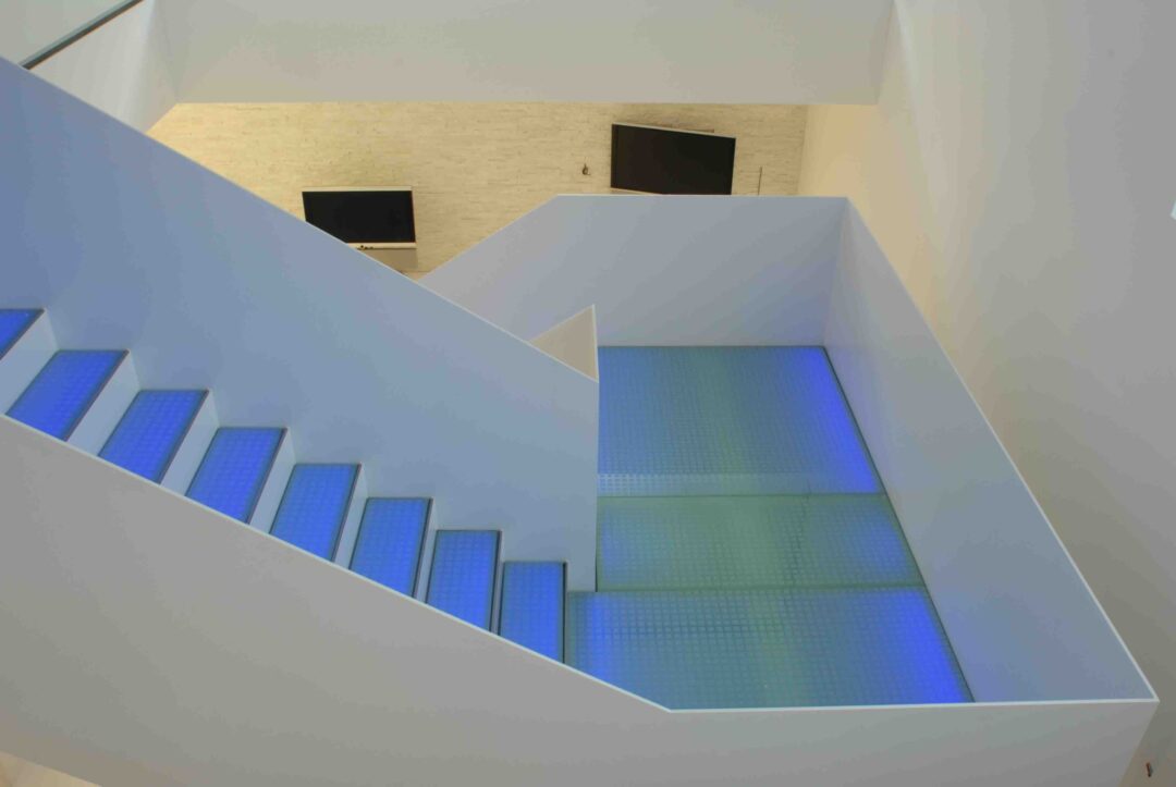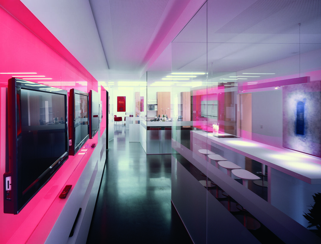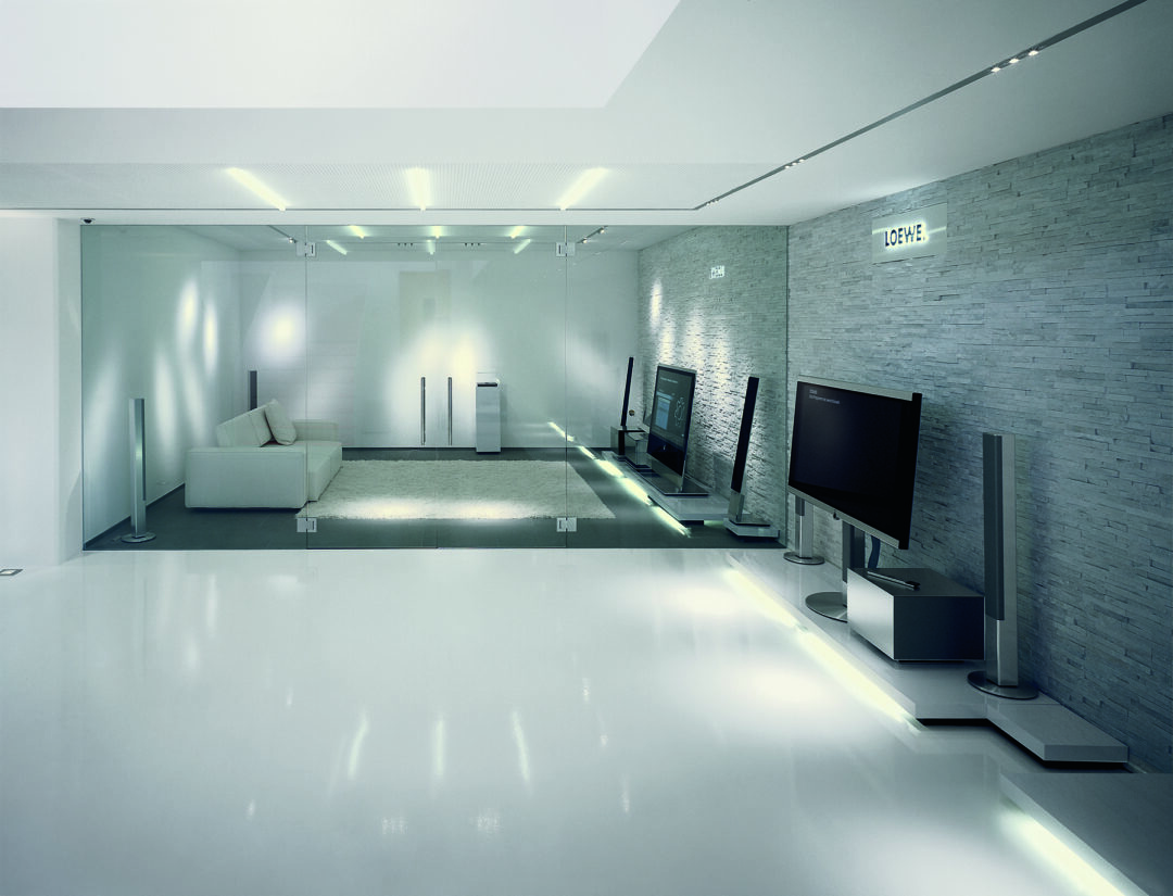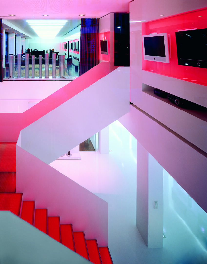 The "VISIONS AND MORE" showroom is an exclusive sales and service store for high-quality HIFI equipment. The approach and claim at the same time was to put the product and the product staging in the foreground. This was implemented through a limited choice of materials and a reduction to the essentials. A balancing act between an atmosphere that did not appear too slick and the product presentation. The structure of the existing multi storied building was not changed - the concept was adapted to the existing column structure. Thanks to its strict positioning, this created a path along a tunnel and down a steel staircase to the basement.