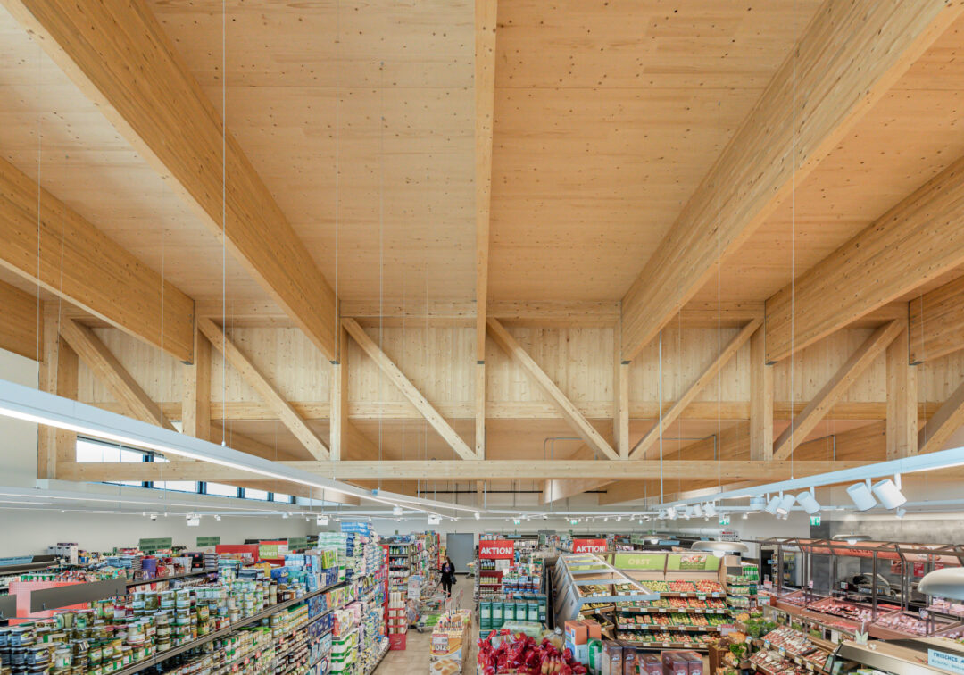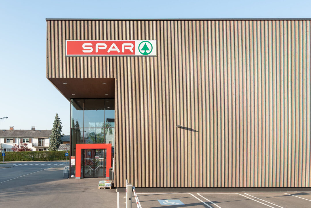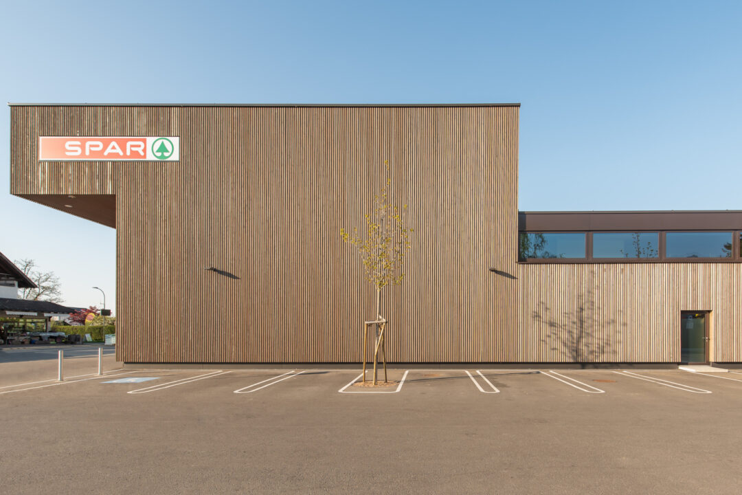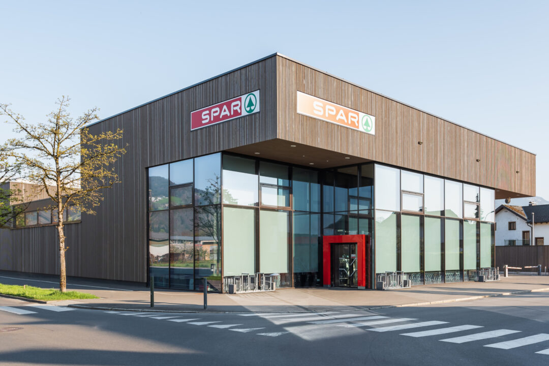 A new SPAR grocery store opened in the Rohrbach district of Dornbirn, which was rebuilt in place of a demolished old store in a construction period of just six months. The buildings front invites customers with its large glass facade and brings natural light far into the sales area.