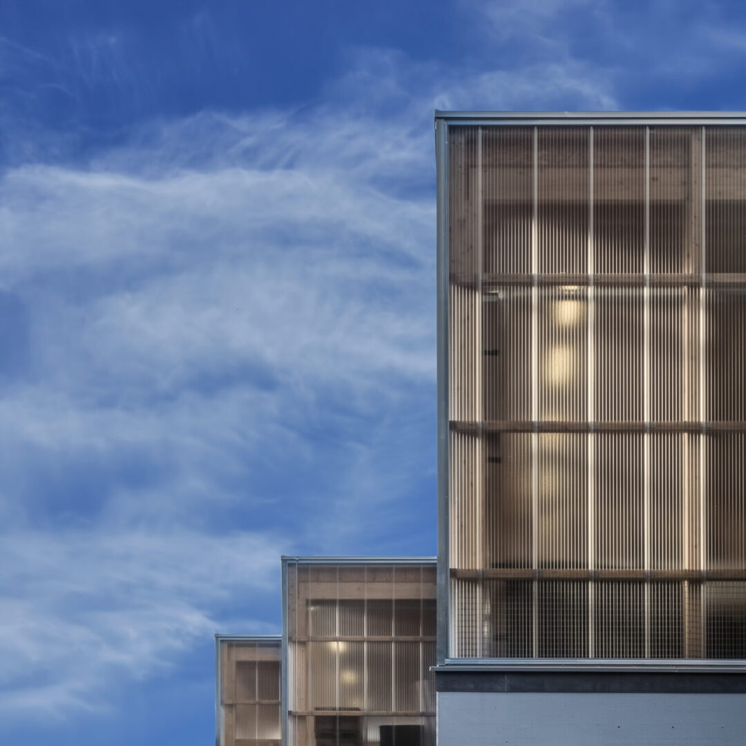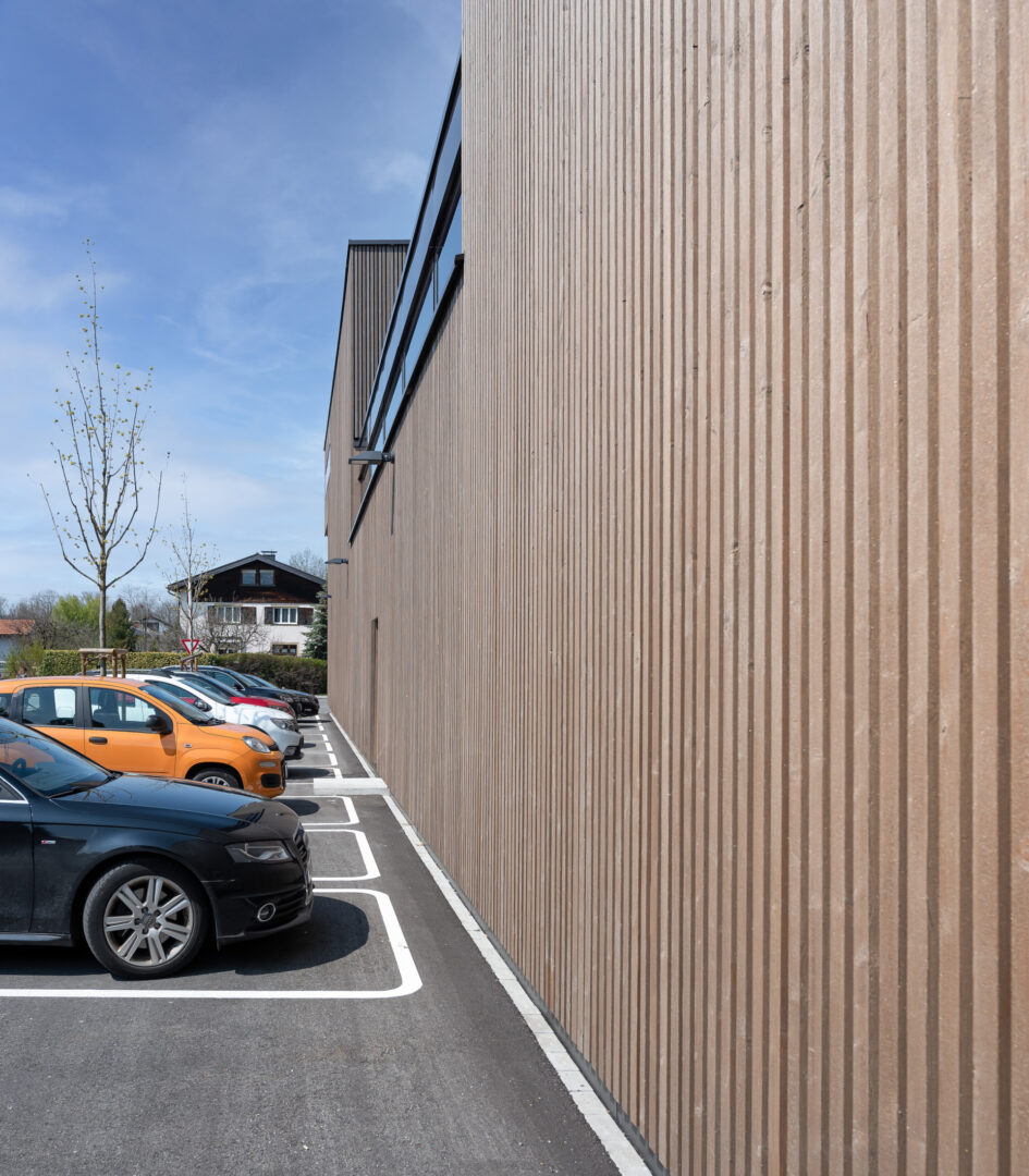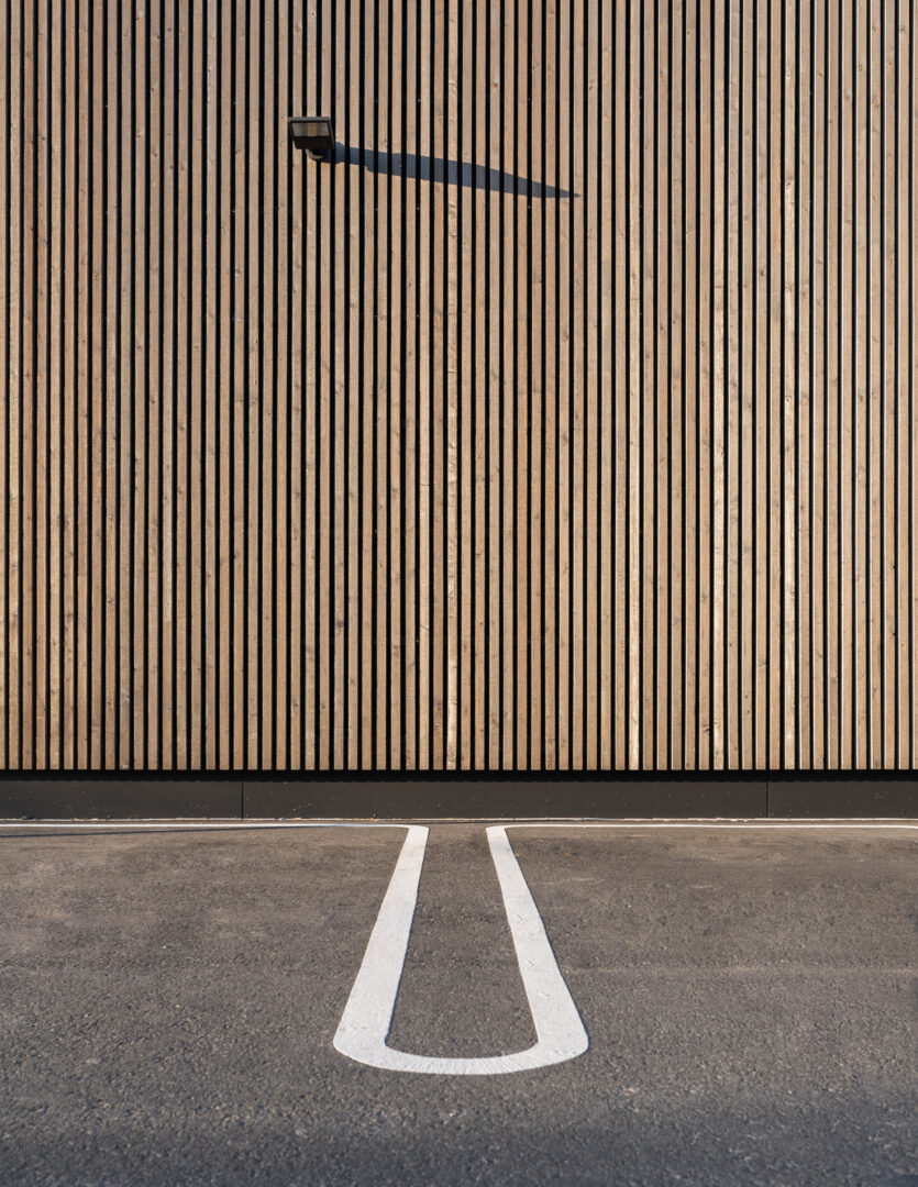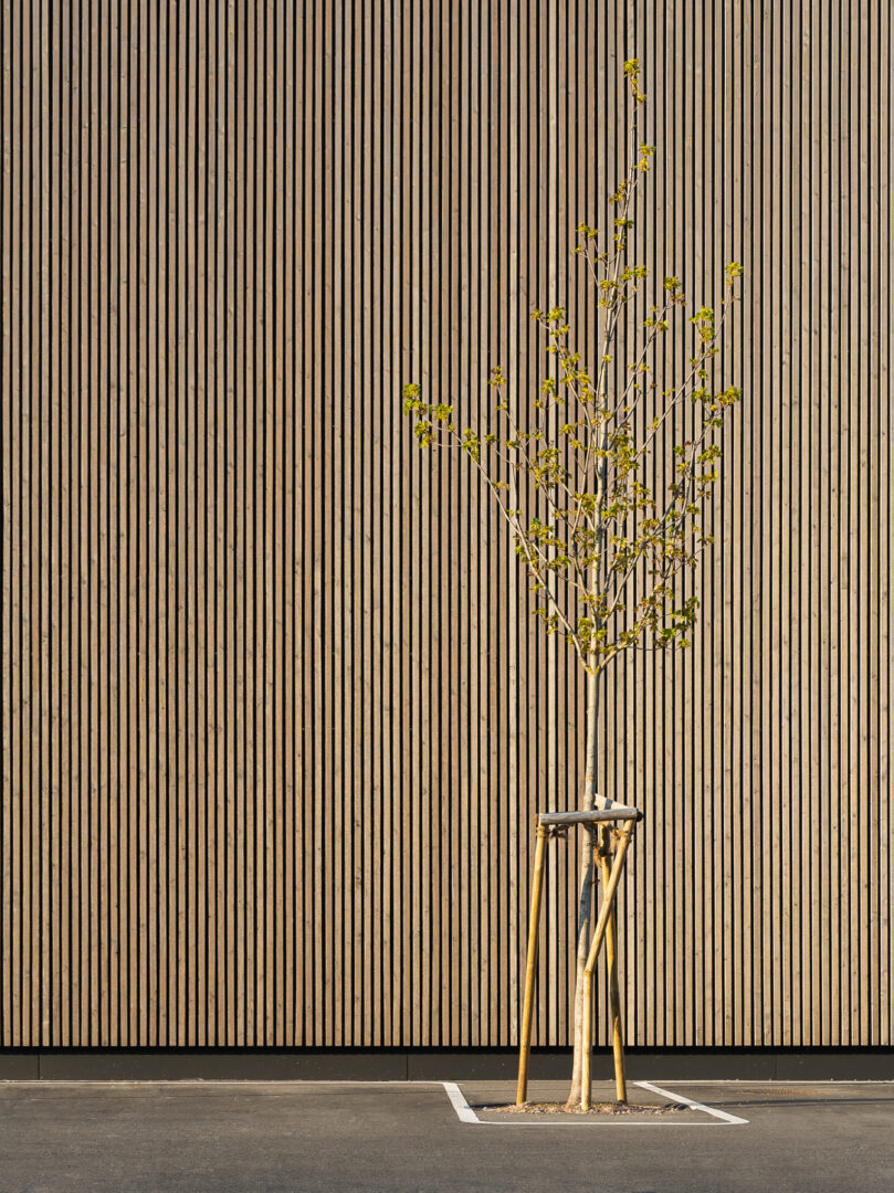 The organic quality of the wood particularly enlivens the parts of the facade that do not have a need for an opening.