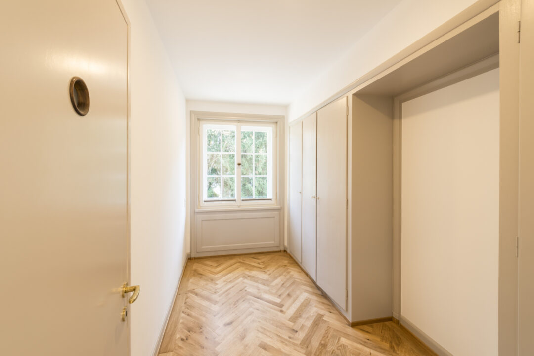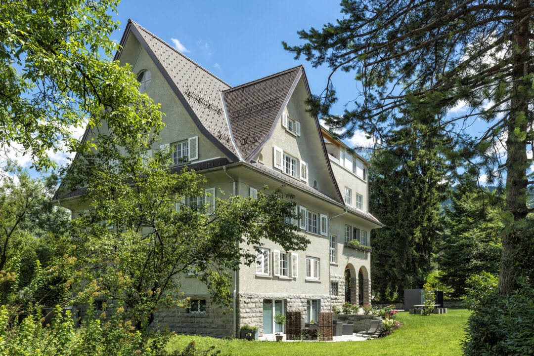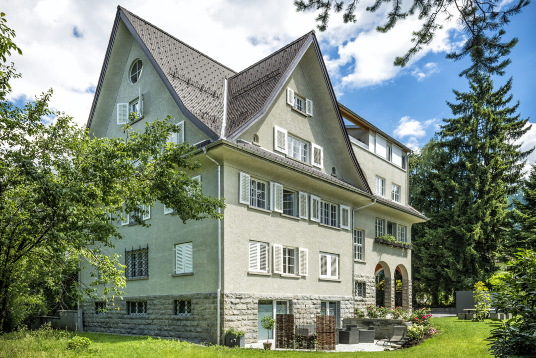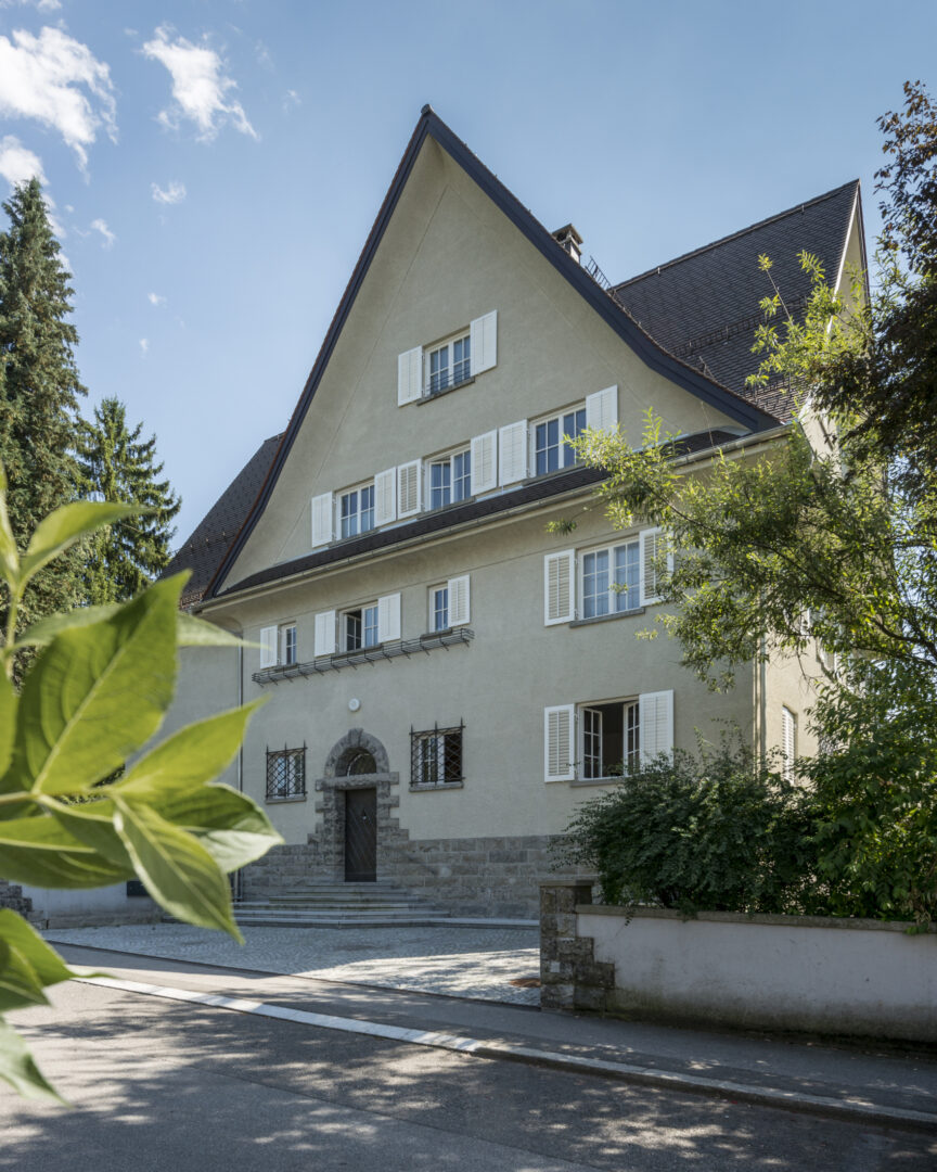 This listed city villa in Dornbirn's Oberdorf was built around 1900 by a local doctor and is surrounded by a large park with beautiful, old trees. The roof and outer skin of the monument remained largely unchanged during the renovation that took place in 2016. Numerous original windows were retained and renovated. The added living space up in the attic is barely visible from the outside.