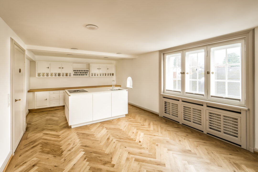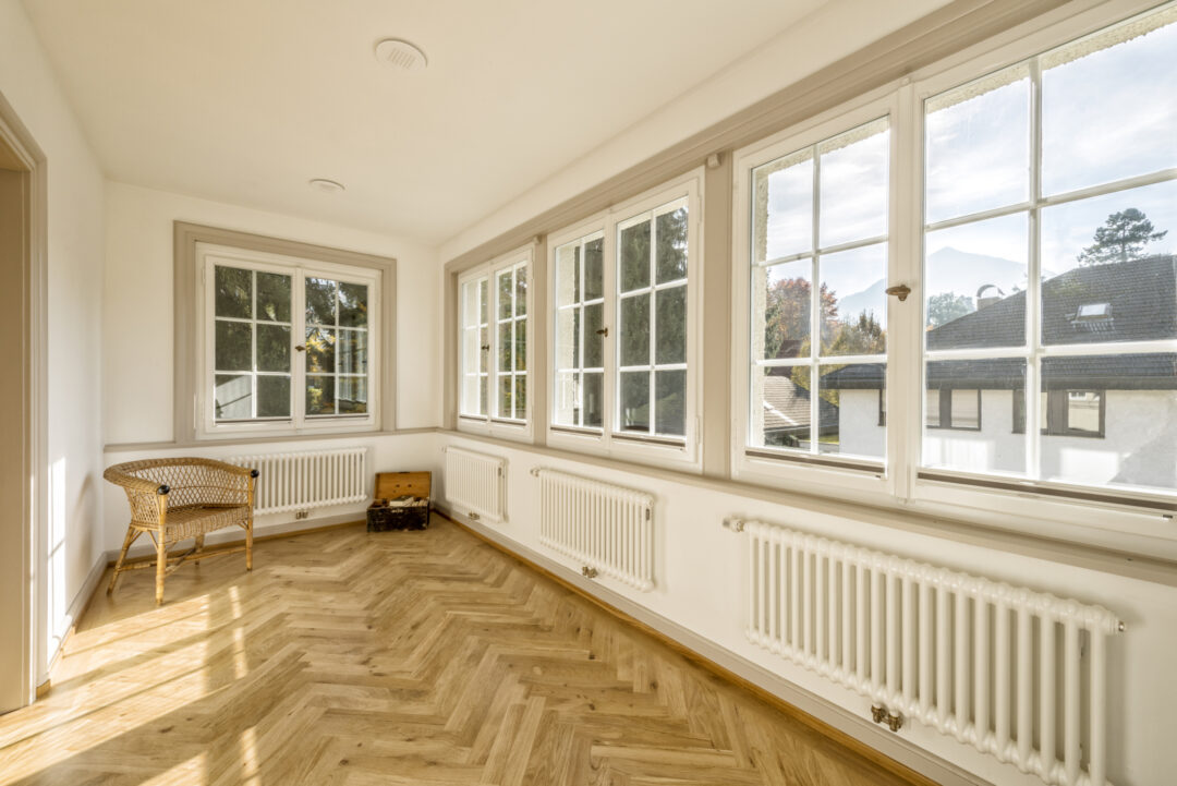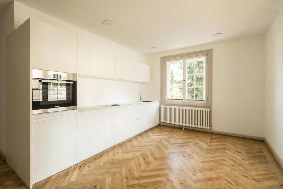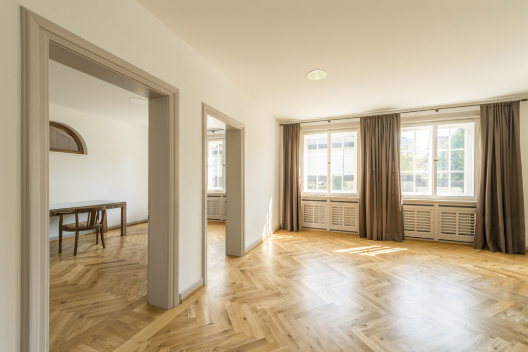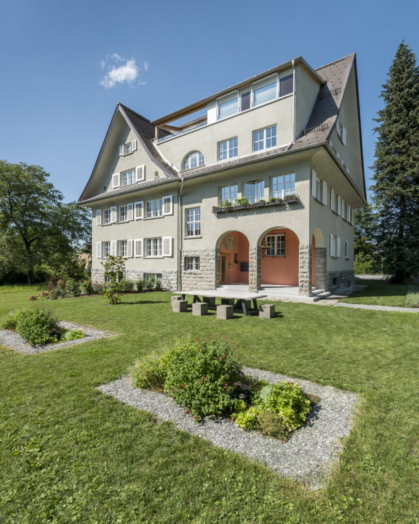 This listed city villa in Dornbirn's Oberdorf was built around 1900 by a local doctor and is surrounded by a large park with beautiful, old trees. The roof and outer skin of the monument remained largely unchanged during the renovation that took place in 2016. Numerous original windows were retained and renovated. The added living space up in the attic is barely visible from the outside.